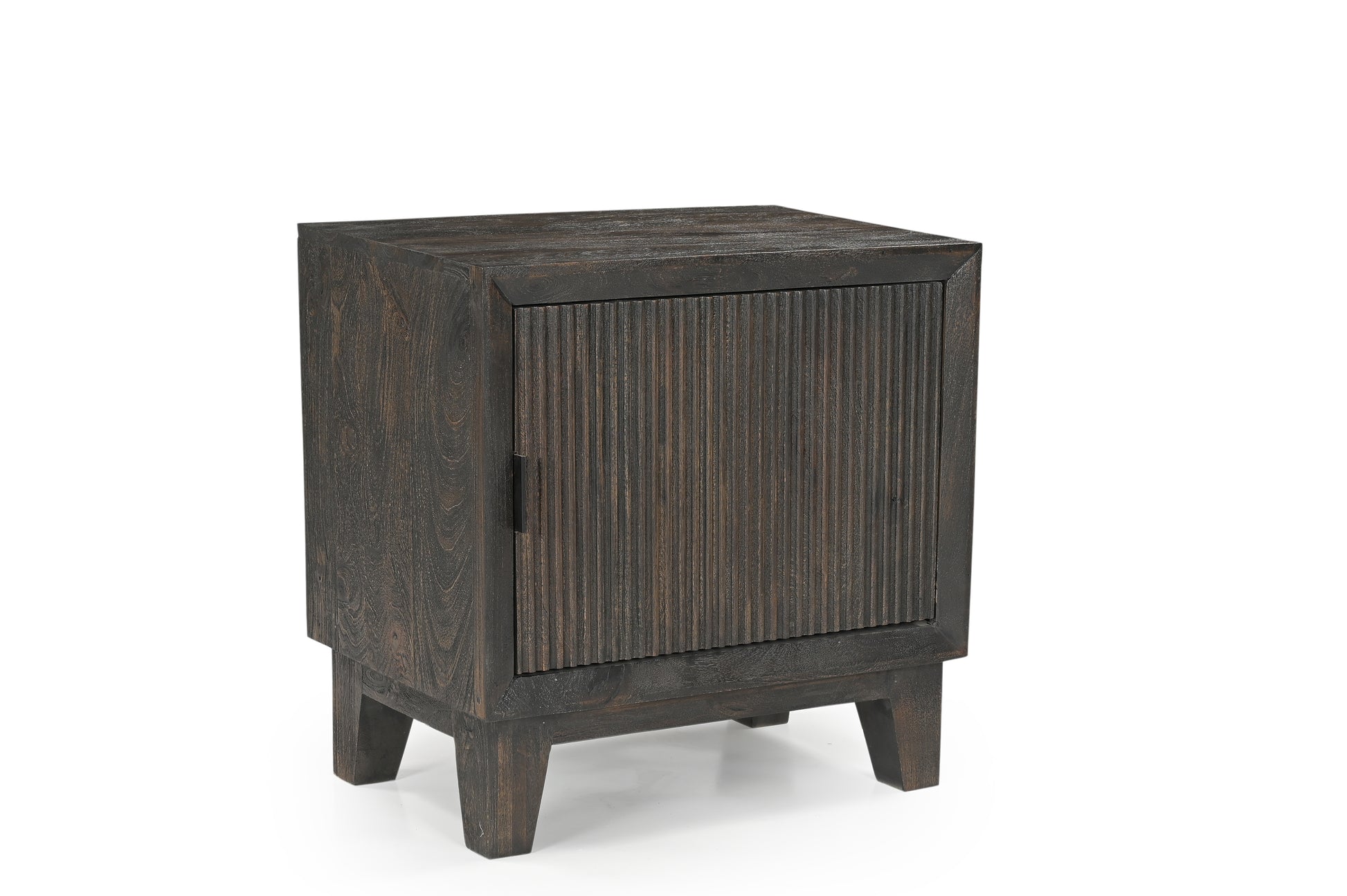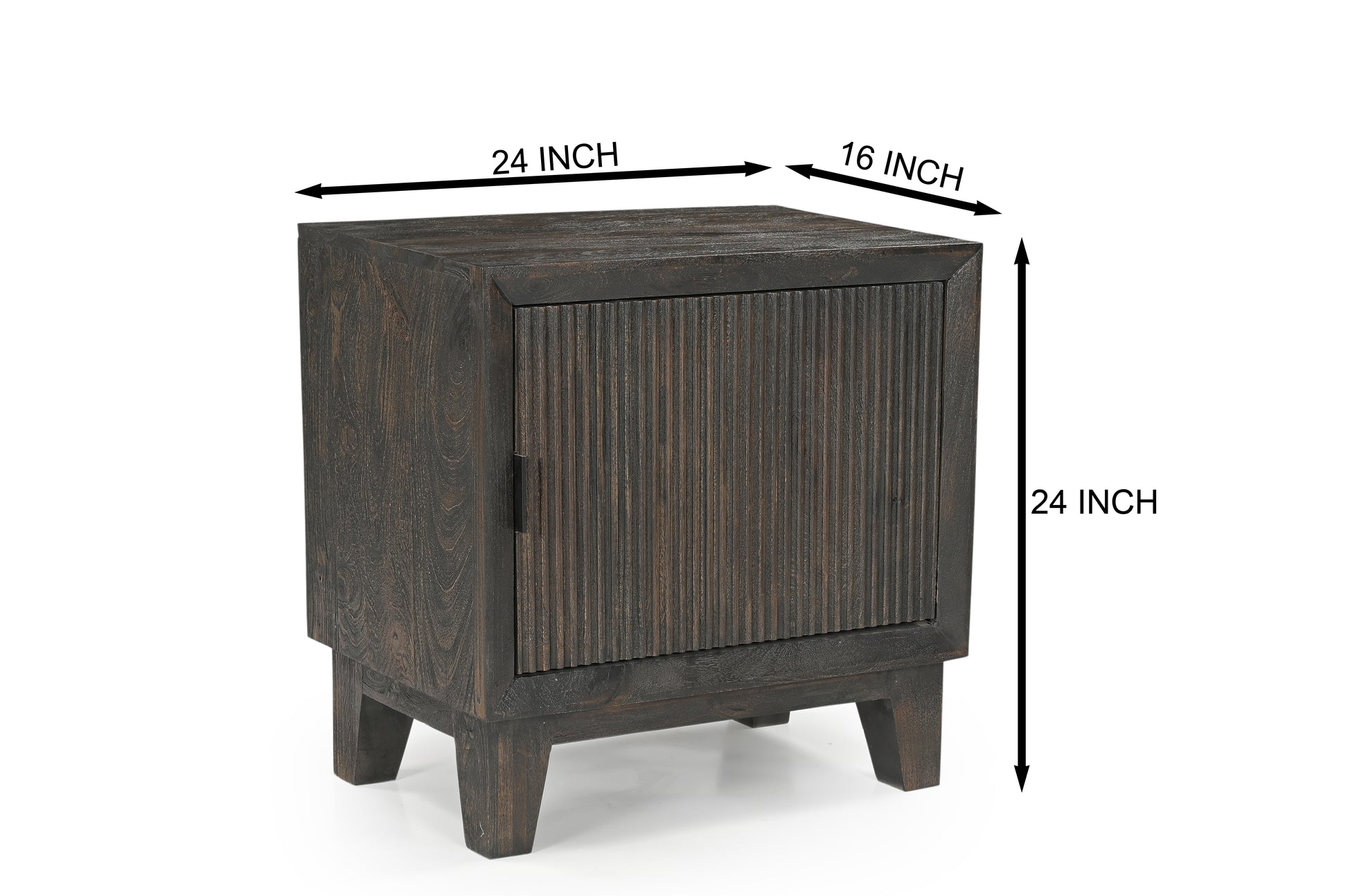 Elevate your bedroom or living space with this Rustic Dark Wood Nightstand, crafted from solid wood with a rich, deep finish that highlights the natural grain. The slatted door front adds subtle texture and character, giving the piece a handcrafted and timeless appeal.
