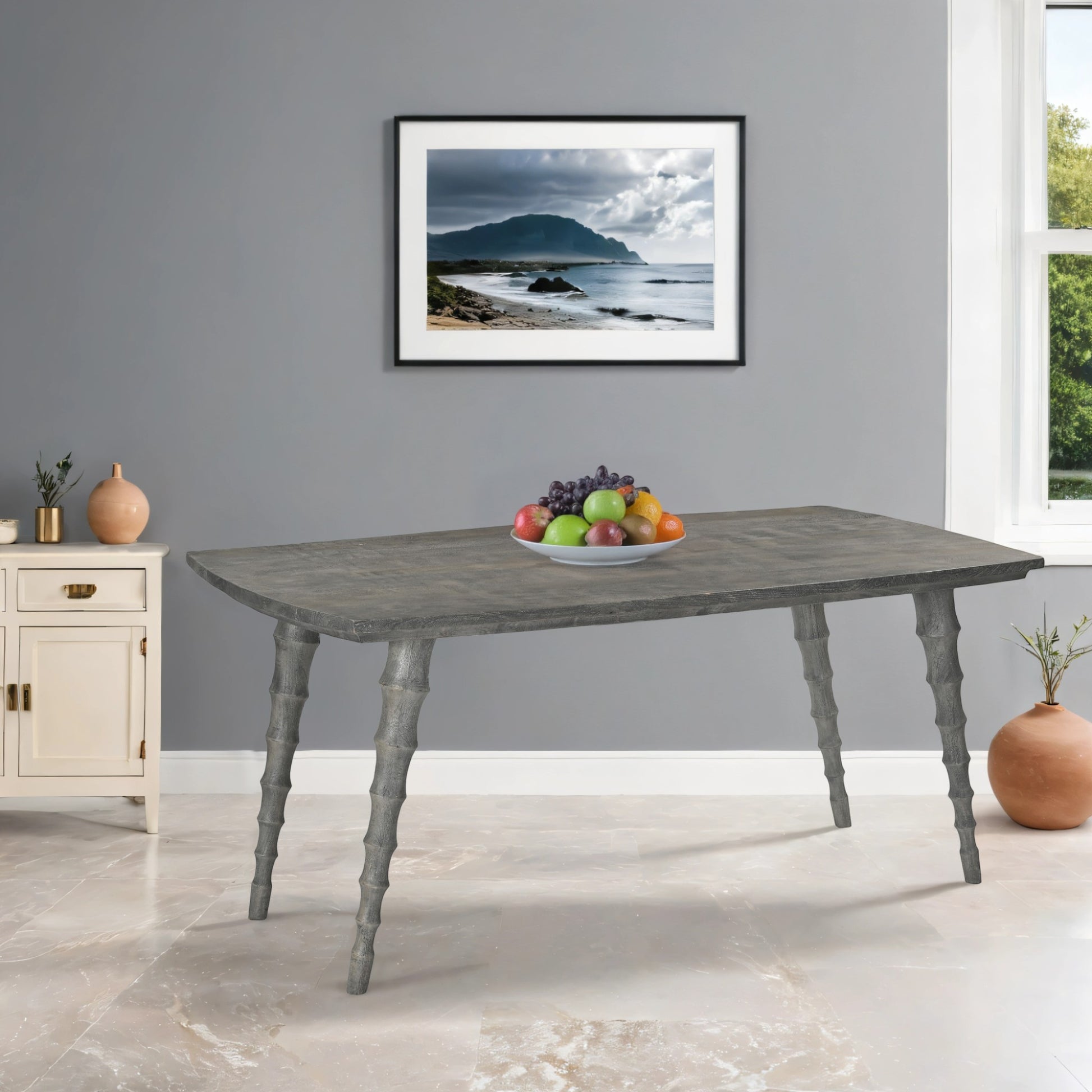 Make a bold design statement with the KCM-108-D dining table—an artful fusion of organic form and industrial edge. Crafted with a solid wood top finished in a rich charcoal tone, this table’s standout feature is its sculptural legs, designed to mimic hand-carved, spindle-like forms. The textured surface and tapered leg detailing bring a unique artisanal touch to contemporary dining spaces.